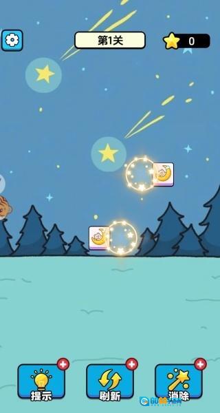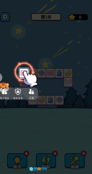 1、游戏从第一关开启,你需要先点击一个图标,接着再点击另一个和它相同的图标,这样就能把这两个图标消除掉。