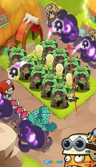 3、战斗时,遇到红箭头标识的紫色僵尸,建议使用具备大面积伤害效果的群攻类植物,通过快速清理这类僵尸,稳固我方植物阵型,从而助力取得胜利。