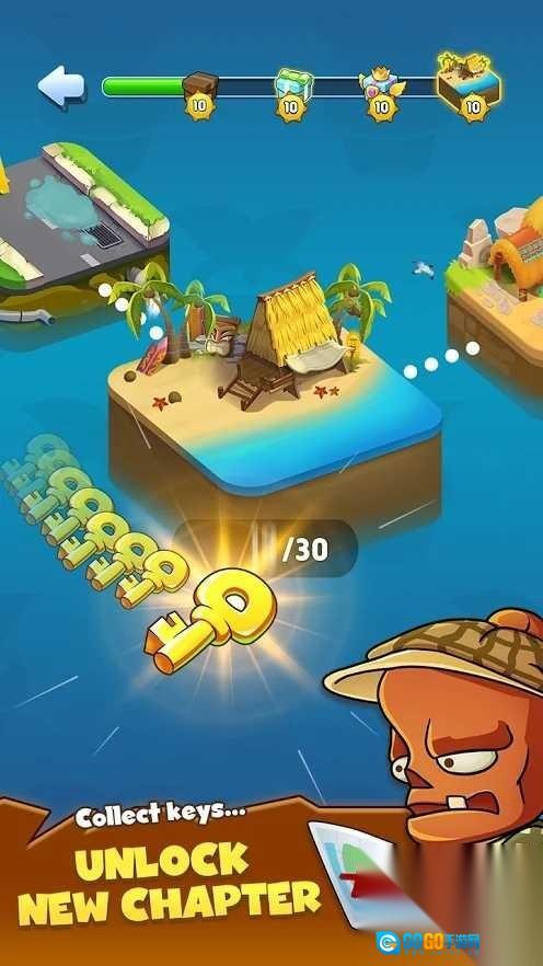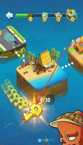 2、在地图界面中,点击带有10/30标识的箭头岛屿,消耗钥匙资源后,即可解锁新关卡、扩展防线,以迎击更多僵尸。