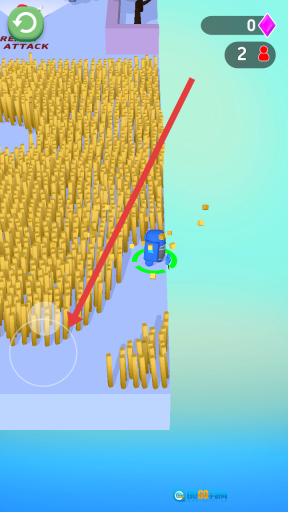 1、需操控蓝色角色进入金色麦田区域,借助摇杆控制角色上下左右移动,熟悉自身机制。