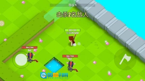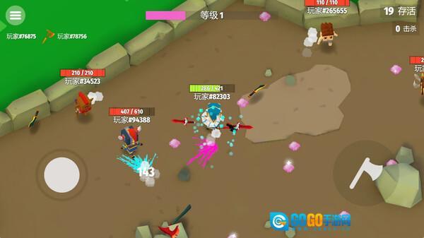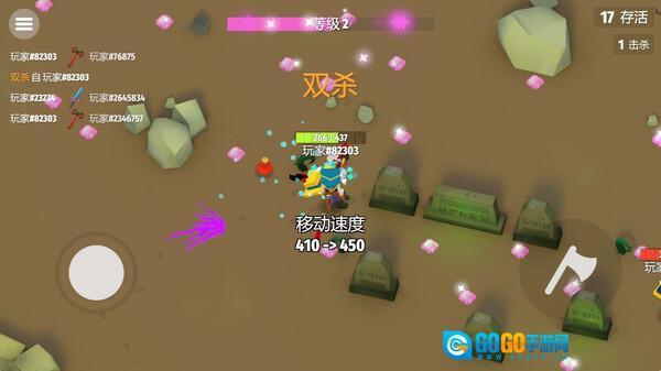 2、你需要操控角色在地图上移动,借助右下角的按键投掷飞斧来攻击敌人,只有精准命中目标才能完成击杀,此外还得躲避敌人的反击以及地形崩塌带来的威胁。