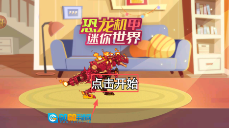 1、首先,点击主界面上的“点击开始”按钮进入游戏,接着挑选你的恐龙机甲,为即将到来的战斗做好准备。