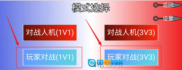 选择联机模式(当前支持同屏对战,例如1v1或3v3)。