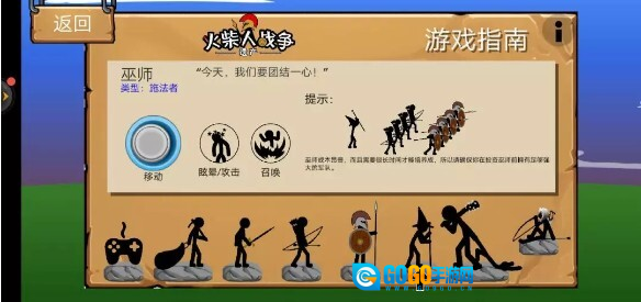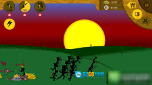 屏幕右上角设有三个按钮,其中向左的箭头按钮在被点击后,所有火柴人单位都会退守至基地后方;当敌人发起进攻时,仅有弓箭手能够对其进行攻击,但这一操作也会导致我方基地出现损耗。
