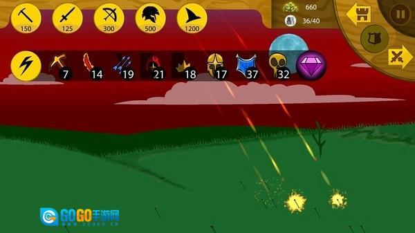 只要矿石数量充足,就可以点击攻击型火柴人,把它们派出去摧毁敌人的基地。