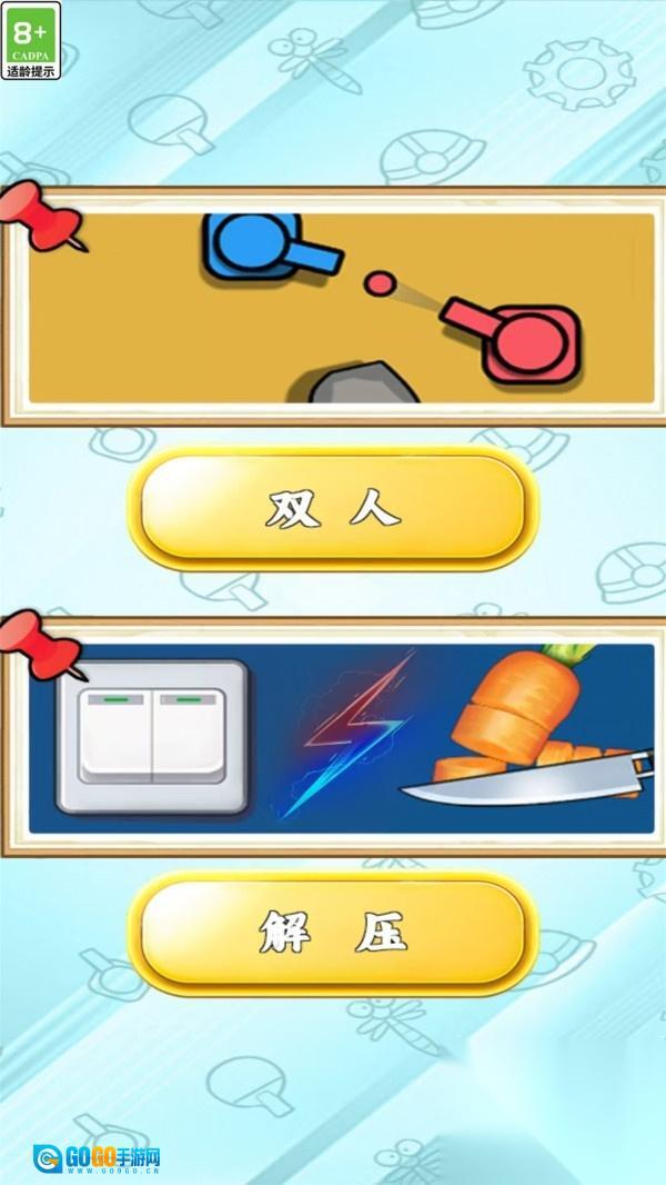 双人大乱斗是一款为好友聚会量身打造的多人在线休闲游戏合集。游戏内含数十款轻松有趣的小游戏,可支持4-8人同屏竞技,玩法丰富多样,涵盖益智挑战与动作比拼等多种类型。简单易上手的操作结合欢乐互坑的玩法,是派对暖场、朋友聚会的理想之选。随时随地开启欢乐对决,创造专属于你们的爆笑回忆。