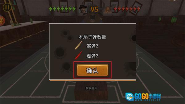 3、顺利进入游戏场景后,玩家会收到一个弹窗提示,弹窗上会显示本局拥有的子弹数量,点击【确认】按钮即可关闭弹窗。
