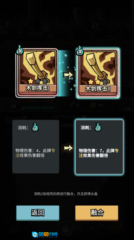 相同的卡牌获得后可以选择进行融合升级。