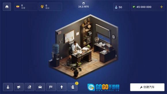 在主界面点击下方第一个按钮,就能研发各类汽车车型以及多种材料和配件。