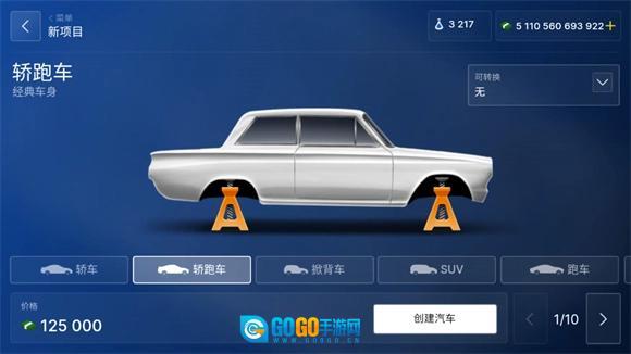 选好后点击“创建汽车”,此时就能挑选汽车的类型了,无论是高端大气上档次的,还是低调奢华有内涵的,都可以自由选择。