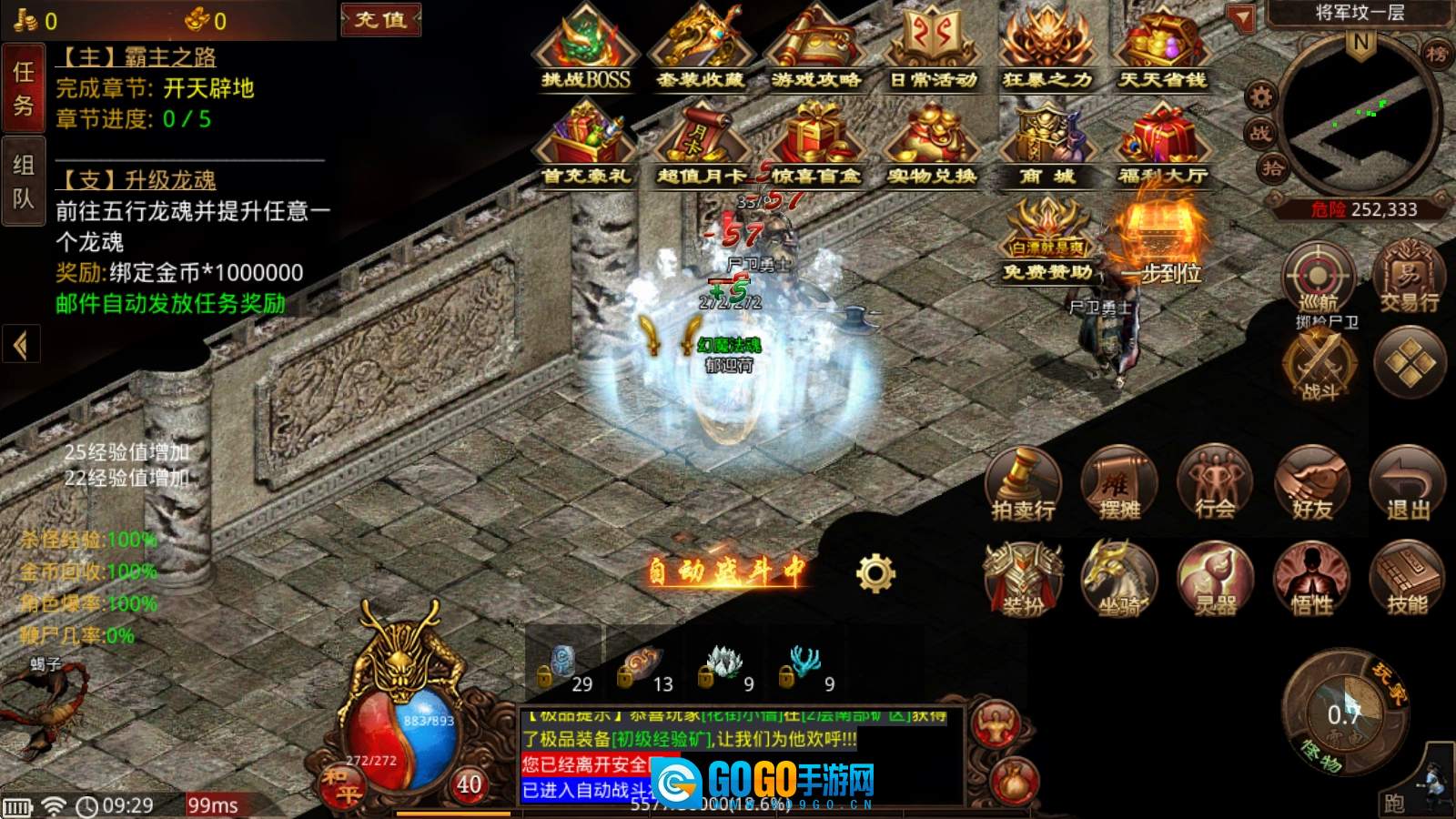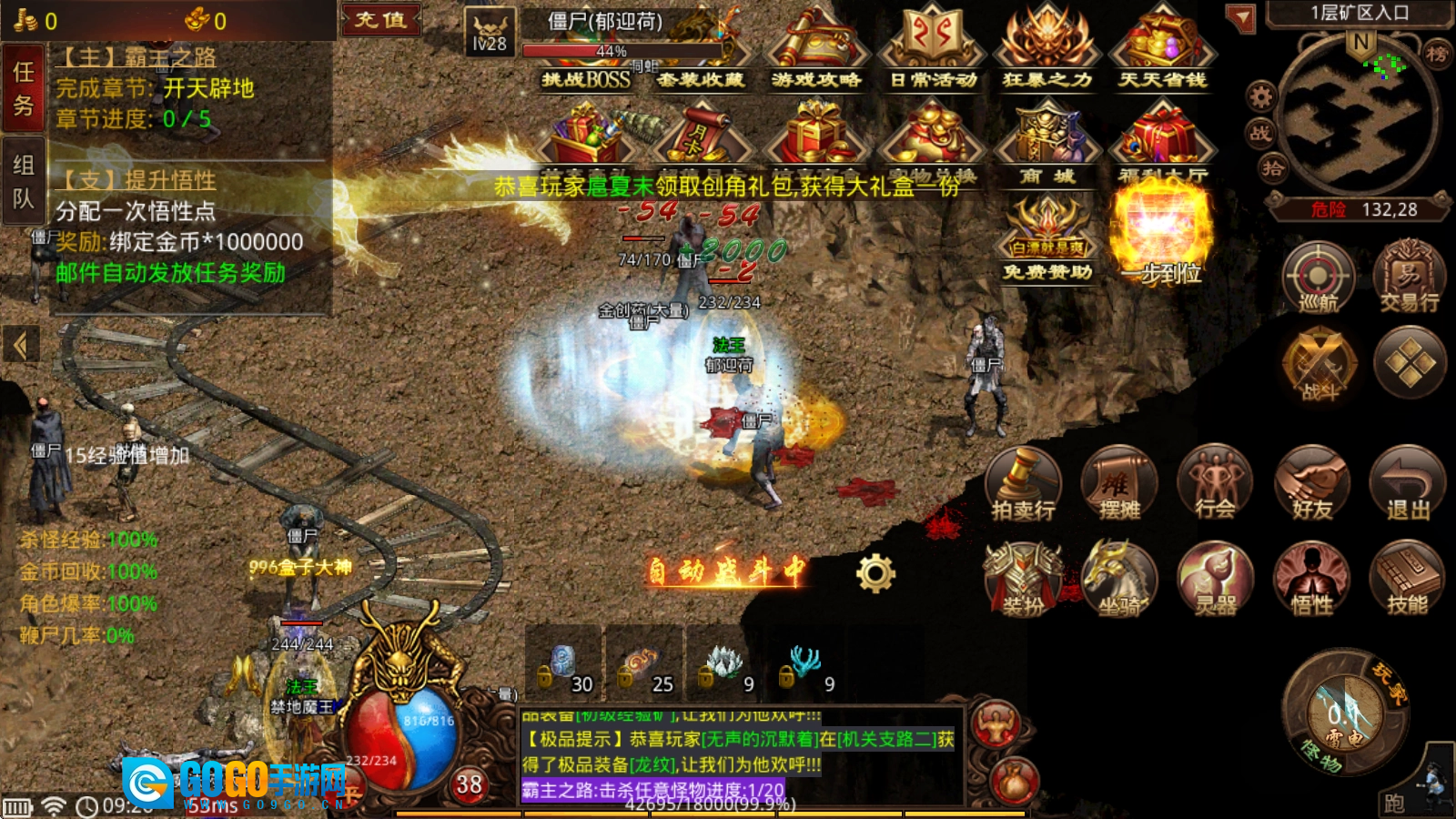 上线后跟着主线“霸主之路”走,既能帮你熟悉游戏玩法,还能提升免费的霸主特权——像自动捡取、自动回收、多格背包这些实用福利都能解锁,多项特权加持让你轻松快速登顶游戏巅峰。