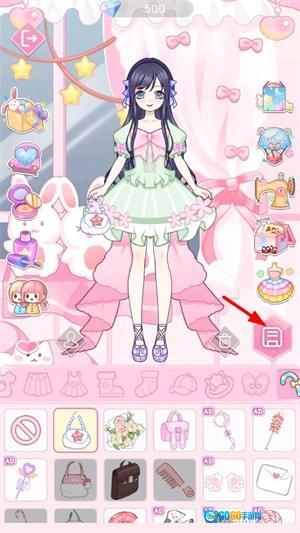 选好服装后,点击右侧的保存按钮即可。之后回到主界面,点击左侧的沙发按钮,就能查看刚才保存的形象了。