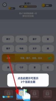 2、要是对分组主题存在疑问,可点击对应的提示,查看当前展示的2个主题,利用主题提示来更准确地挑选单词,助力关卡顺利推进。