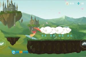 2、飞行跑酷:撑开你的小红伞翱翔天际吧!飞行途中可以收集各类水晶,这些可是解锁后续篇章的关键道具哦。