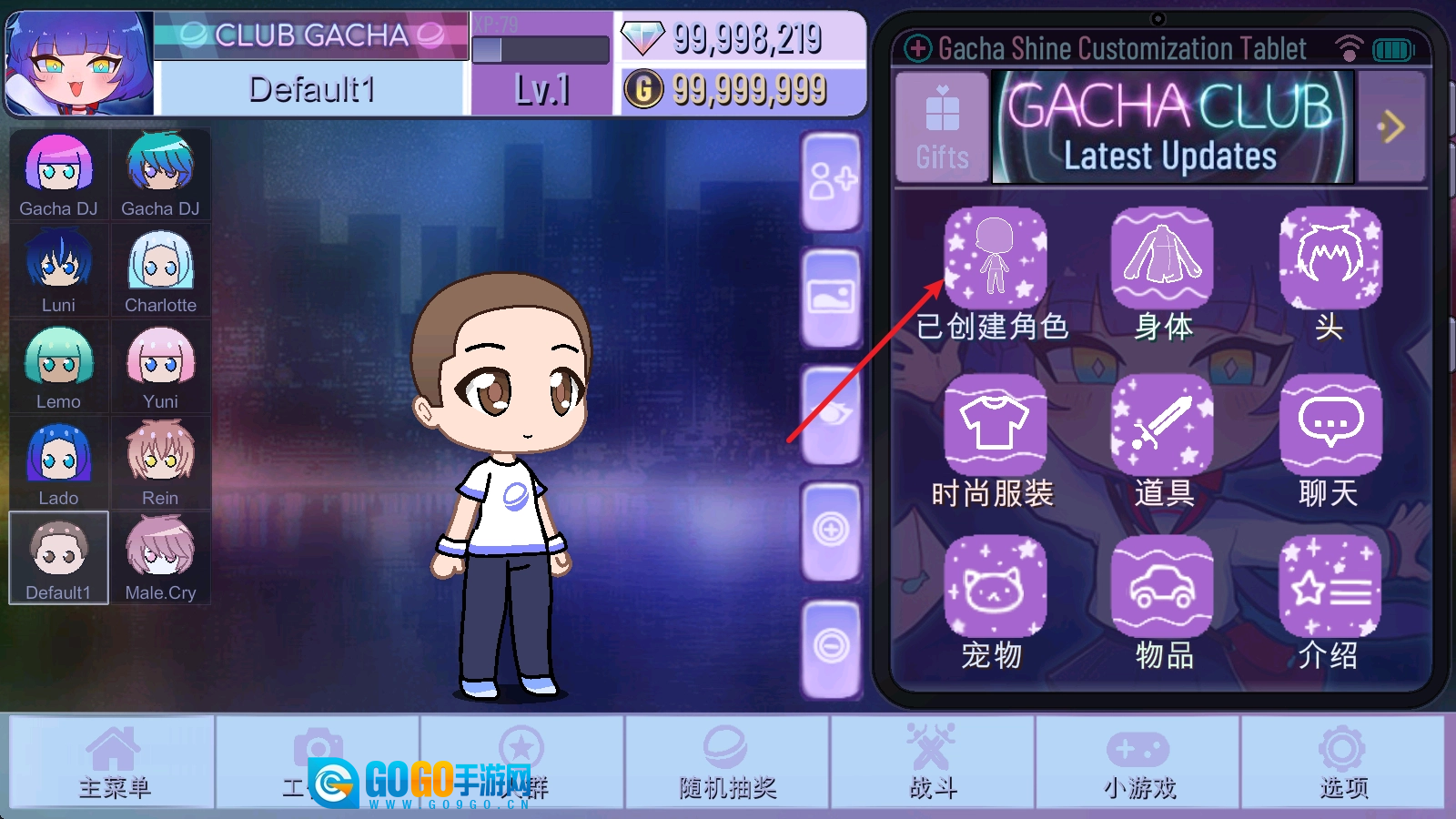 首先我们选定一个初始角色,接着点击右侧已创建好的角色。
