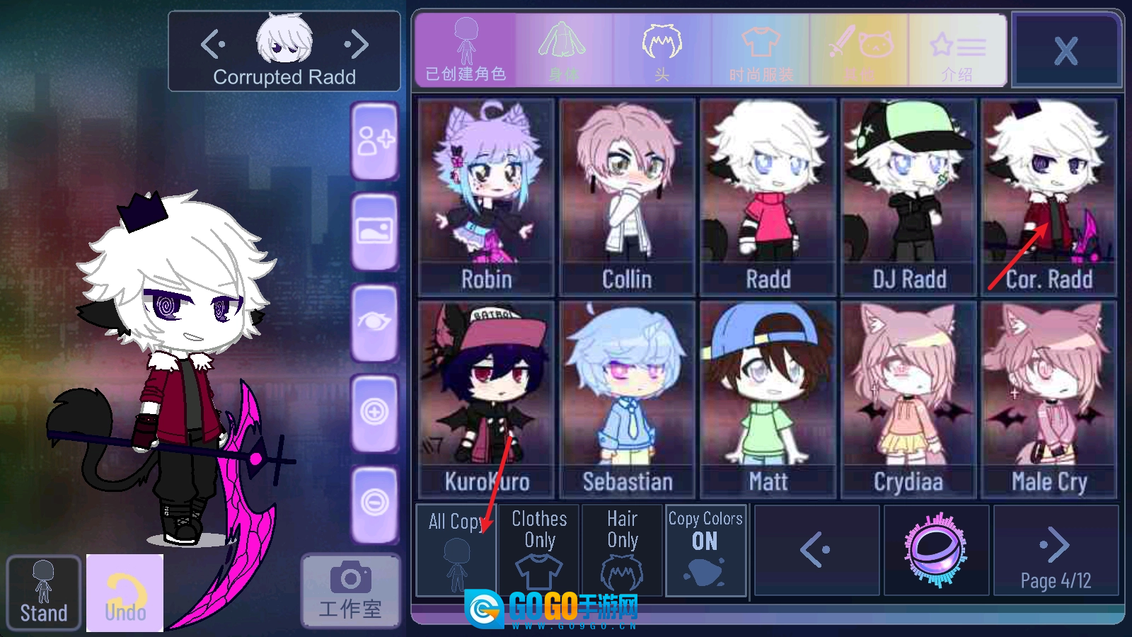进入后,我们能在右侧看到大量已创建好的角色,选中左下角的ALL Copy,接着点击角色就能直接复制过来。