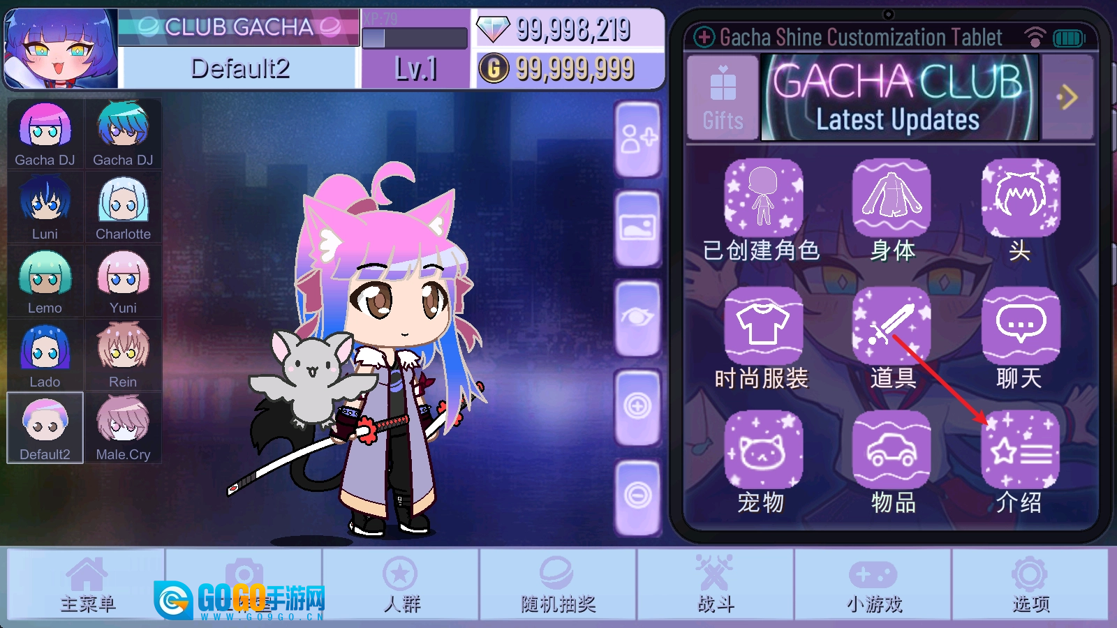当我们获取到其他玩家分享的人设代码后,得通过正确的操作步骤才能使用它哦。第一步,我们要点击主菜单下方的“介绍”选项。