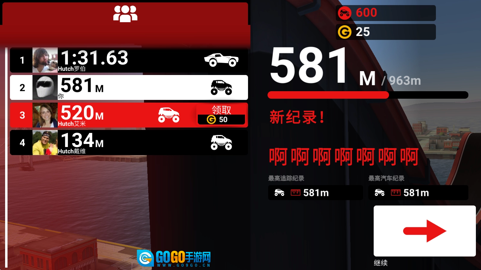 当汽车爆炸,或者汽车没油了之后就会结束挑战。