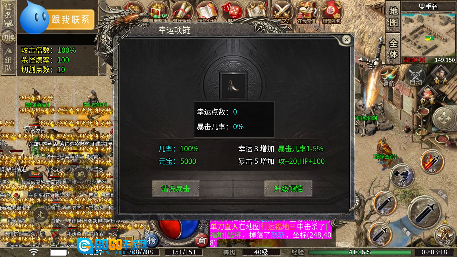 幸运项链:消耗元宝就能提升幸运点数,幸运值达到3时可增加1-5%的暴击几率,幸运值到5时则会增加20点攻击力与100点生命值。