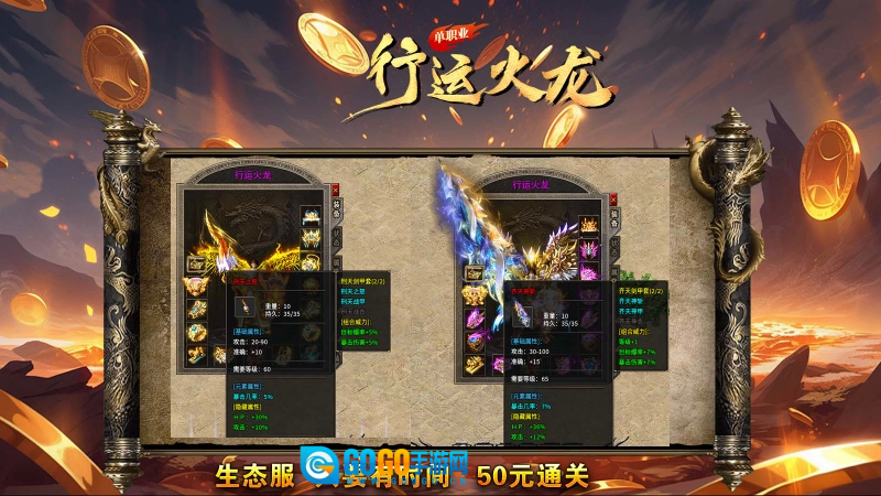 行运火龙单职业,全新180火龙单职业版本,是个全民都玩得起的版本!本服独创多种BUFF玩法,各种BUFF可自由搭配,打造专属独特流派。游戏里打怪就能爆一切,海量精彩地图任你自由探索,纯自然爆率,散人能无限追梦!本服是主打平民消费的生态大服,人人都能追梦,逆袭成大哥不是梦!