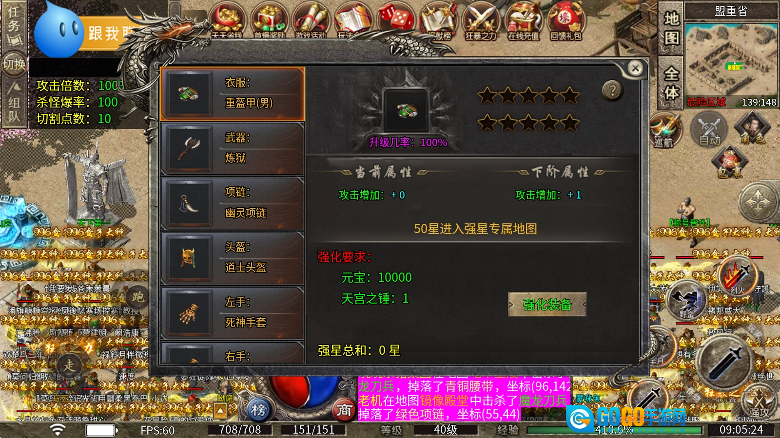 装备强星:消耗元宝就能对装备进行强化升星,等强化到50星后,就可以进入强星专属地图了。