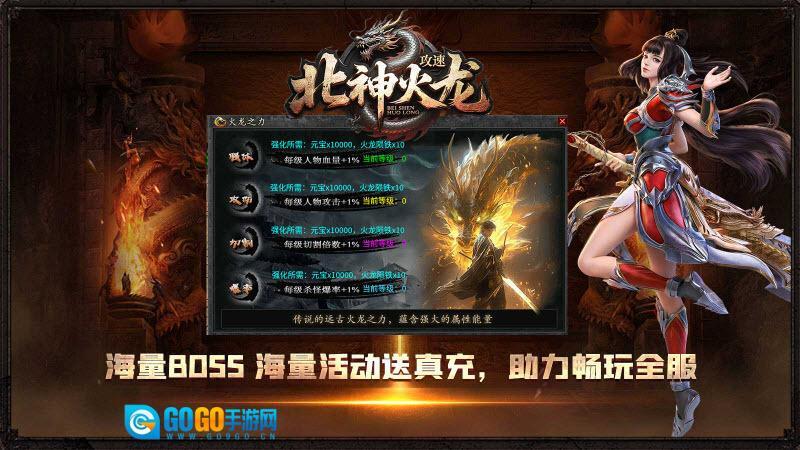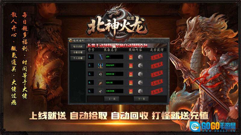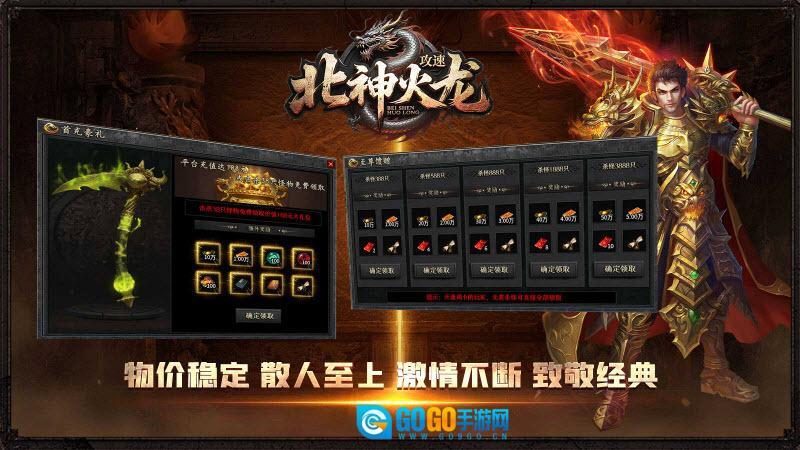 《北神传奇》(别名《北神攻速火龙》)是一款经典的1.85火龙版传奇游戏。玩家进入游戏即可获得超高攻速加成,让打怪过程变得轻松顺畅。游戏中的怪物会掉落各类装备与材料,只要投入足够时间,就能获取所需的全部资源。此外,游戏每日都会推出丰富多样的活动,参与活动就能领取丰厚奖励,帮助玩家快速提升等级,轻松增强实力。