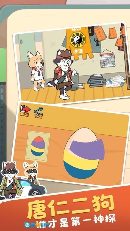 1、围绕轻松搞笑的剧情展开,玩家将跟随唐仁、二狗等角色,在充满奇思妙想的案件里开启一段爆笑的探案旅程。