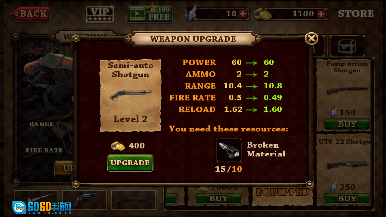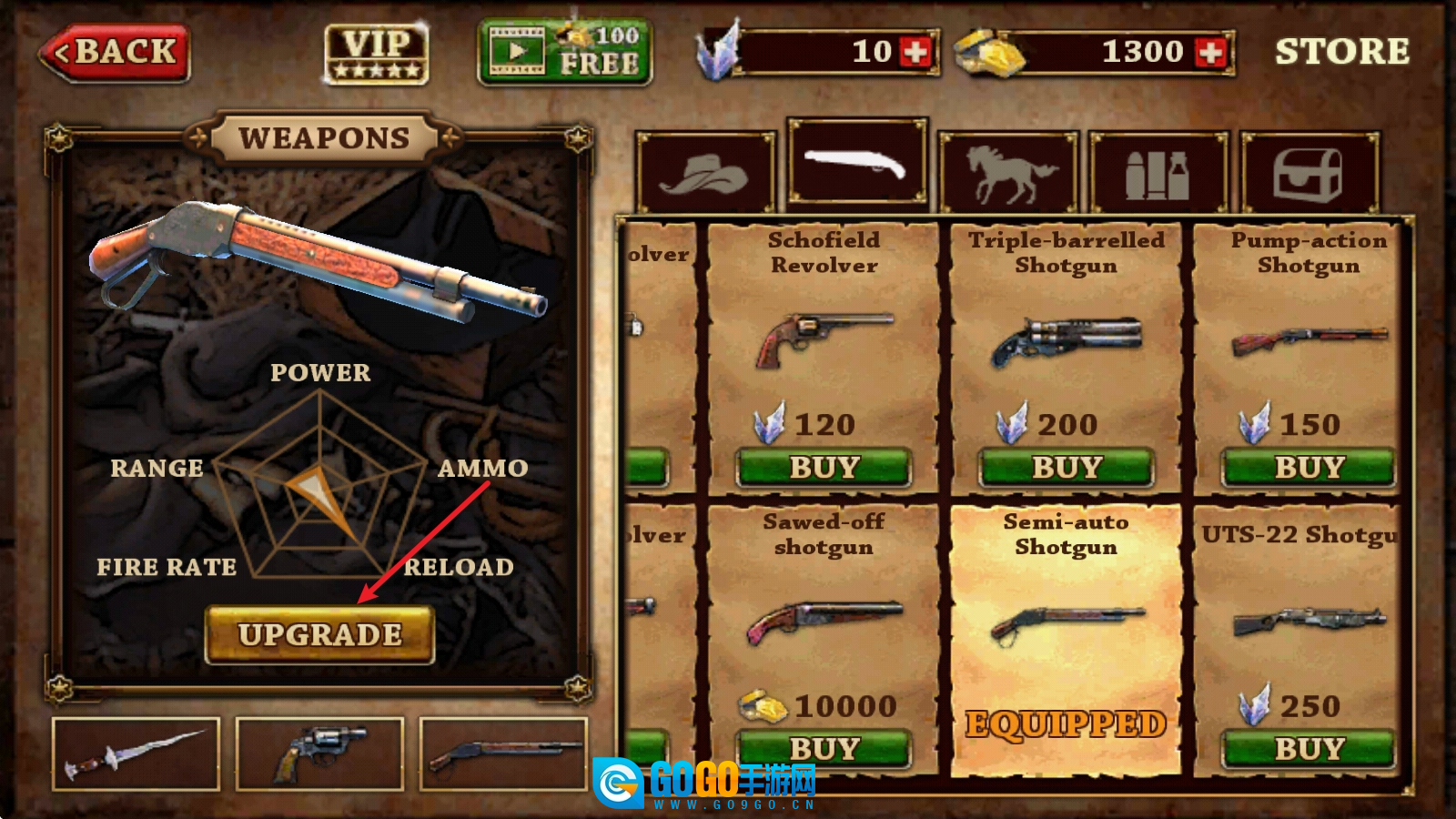 购买后的武器,还可以点击进行升级。