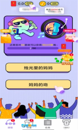 每一关都设置了有趣的猜歌任务,答对一定数量的题目就能通关,领取系统准备的惊喜奖励。