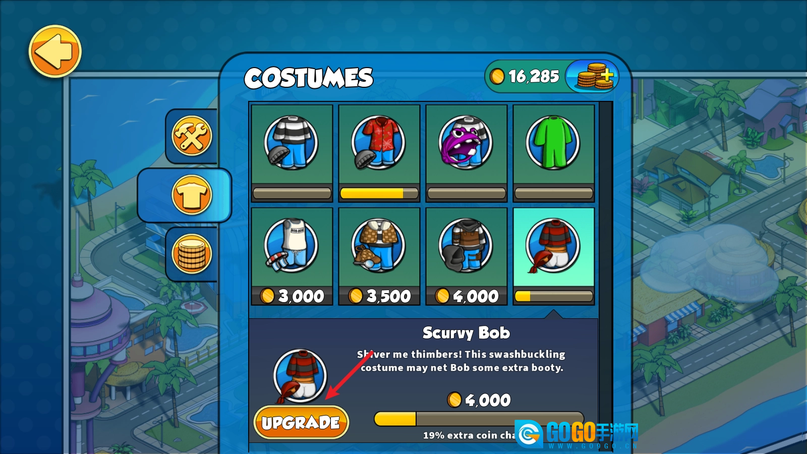 在游戏里,你还能给鲍勃换上各式各样的衣物,而且升级这些服装后,还能提升鲍勃的移动速度呢!