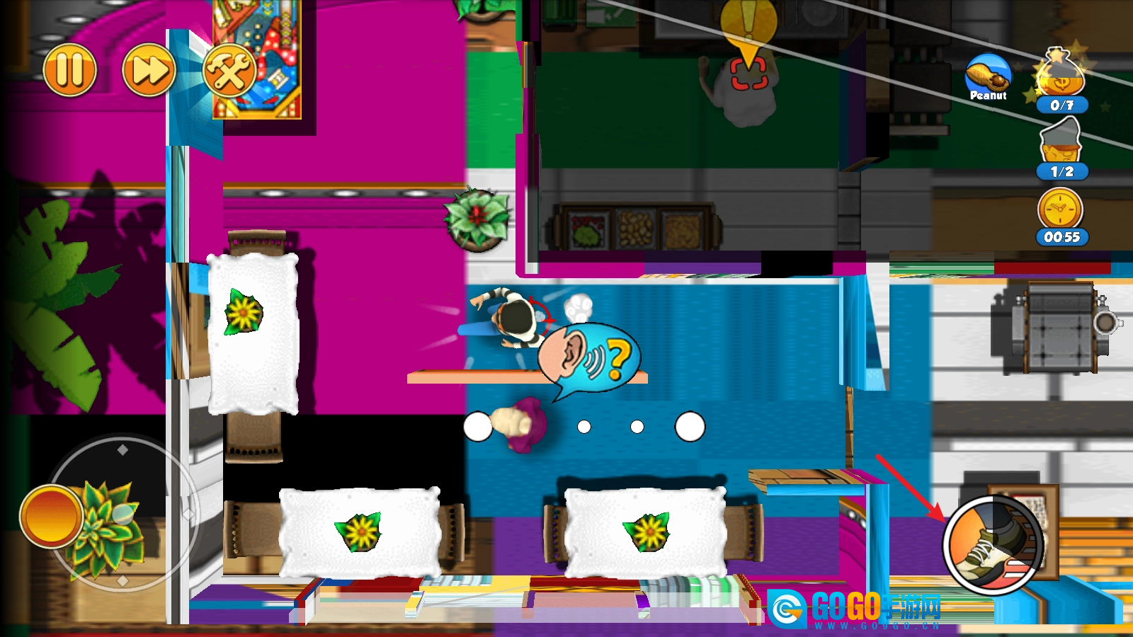 房间内会有其他人,注意躲避他们的视线。