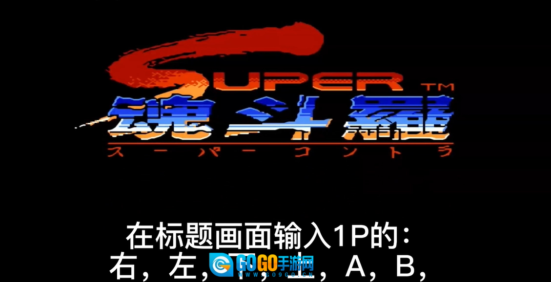 需要我们在标题画面时输入1P的指令:右、左、下、上、A、B。具体来说,就是要在下面这个画面中进行输入操作。