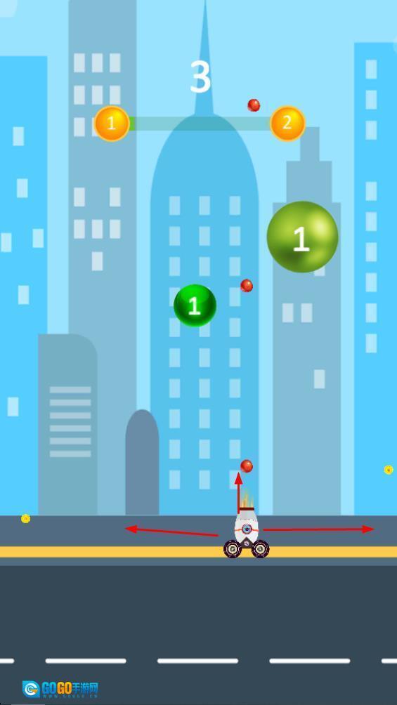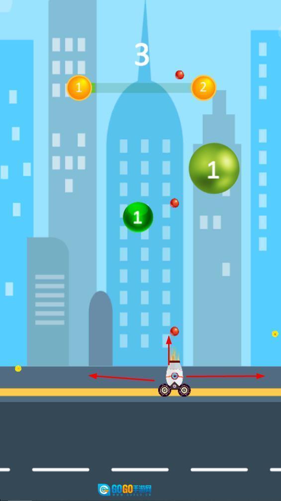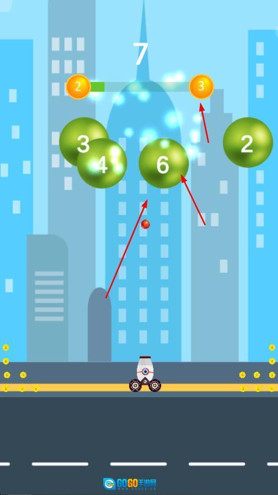 1、在城市环境下,利用炮弹发射器对准绿色泡泡进行发射,击碎泡泡以获取相应分数。