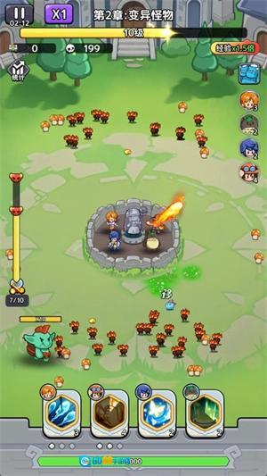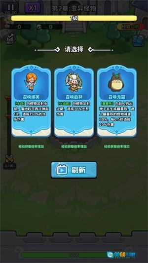 选好英雄后游戏便正式开启,角色会自动攻击出现的敌人。