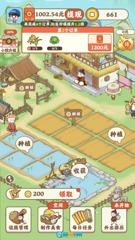 这是一款十分休闲有趣的模拟经营小游戏,你可以在这里经营农田、鱼塘、稻田和牧场。按照客人给出的订单需求进行种植,完成订单就能获得丰厚的奖励!不仅如此,后续还能解锁酒楼玩法,用剩余的各类农作物制作美食,尽情享受这段温馨美好的幸福时光。