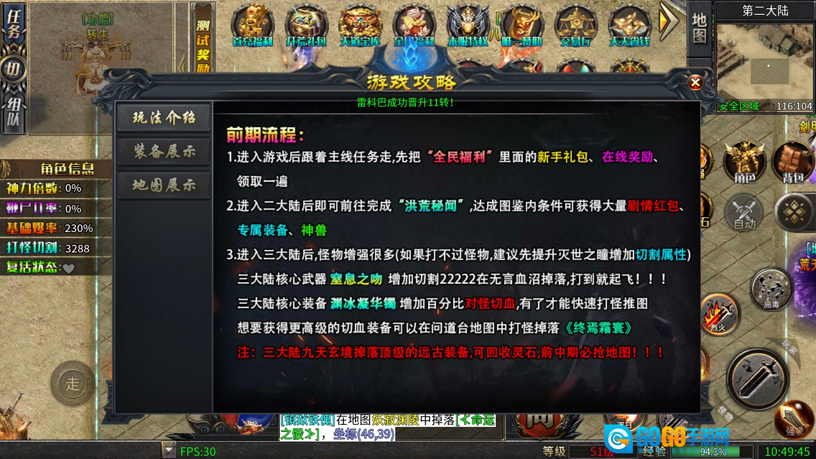 三大陆的九天玄境会掉落顶级远古装备,还能回收灵石,是前中期必须争抢的地图。