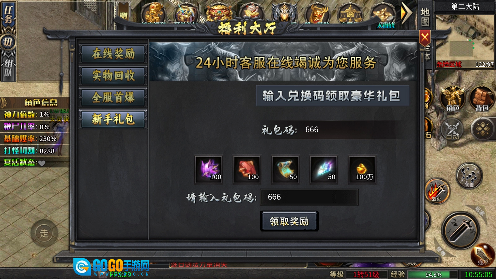 进入游戏后,按照主线任务的指引推进,首先把“全民福利”里的新手礼包和在线奖励都领取一遍。