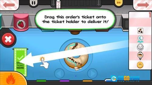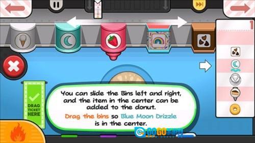 6、甜甜圈制作完成后,把【订单】拖到左边,就能交付给顾客了。