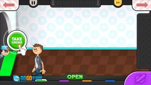 1、进入老爹甜甜圈店游戏后,我们首先点击左侧的【TAKE ORDER】按钮来帮顾客点单。