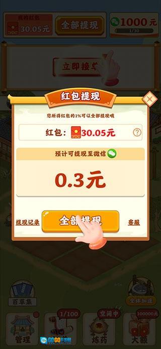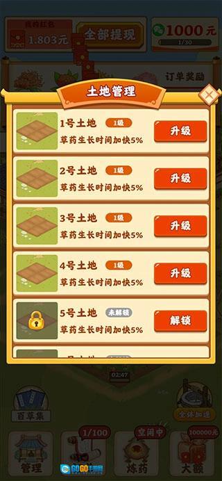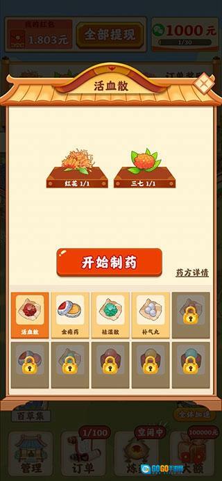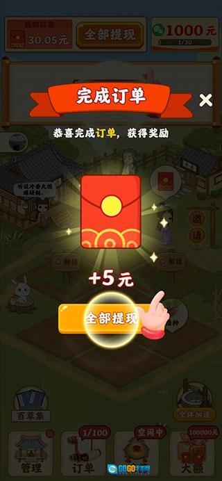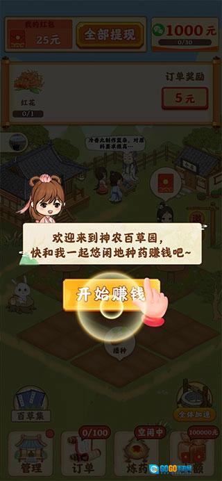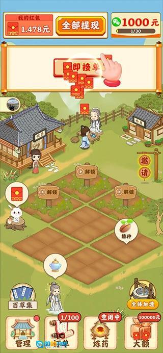 药材成熟后轻点收割,完成订单即刻获得对应红包奖励。
