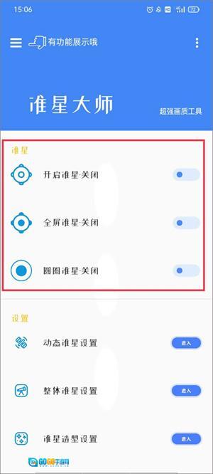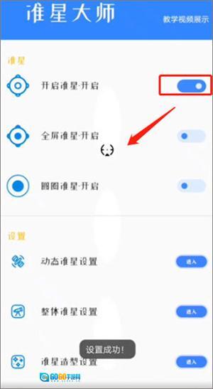 3、再次返回首页点击打开准星,即可查阅切换效果。