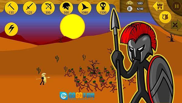 第四关是矛士关卡,前期用4个矿工发展经济,后续全力培养剑士(因为矛士克制弓箭)