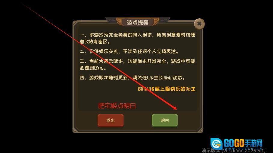 1、阅读前请仔细查看游戏公告说明,确认理解后点选“明白”进入。