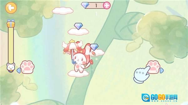 6、在游戏界面左右都有一个小猫爪,点击哪边小猫就往哪边跳。