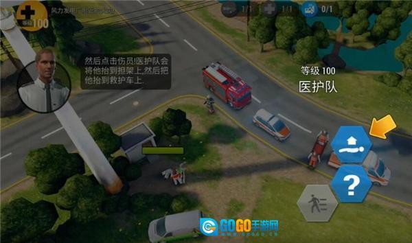 然后点击伤员,医护队就会把他抬到担架上,接着再将他抬上救护车。