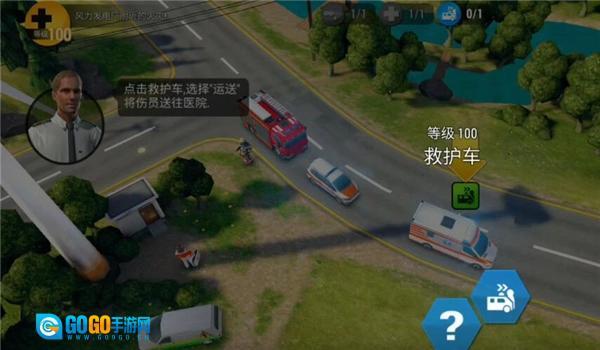 点击救护车,选择“运送”选项,把伤员送往医院。