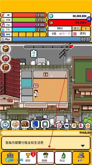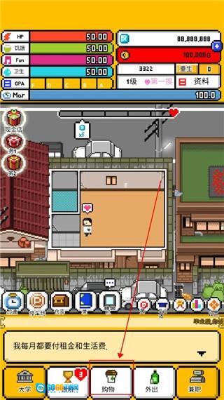 5.要是觉得现在的生活条件确实有些简陋,别气馁,点击购物选项,就能开启“买买买”模式。