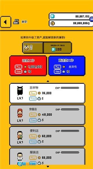 8. 不过刚开始的时候,适合新手尝试的兼职只有吉祥物这一种,其他类型更丰富的兼职需要等你把房产升级之后才能解锁,所以可得努力提升生活品质才行。