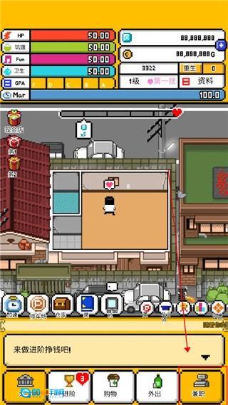 7.要是手头紧没钱买东西怎么办?很简单,点击兼职选项就可以了。