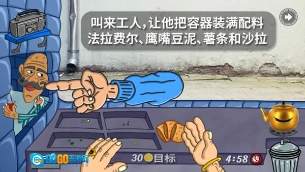 5、将这些食材组合成一份完整的法拉费三明治,并将其递给顾客以赚取金币。